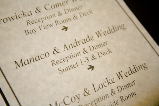 The ceremony was held at a resort called Paradise Point. An outdoor event at 5:30 pm, the sun was still quite high, bright and beaming. Soon after, every guest was treated to cocktails and appetizers on the deck, followed by dinner and dancing in the ballroom. What a beautiful day that was for the bride and groom!