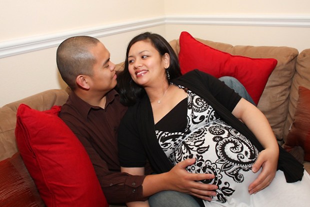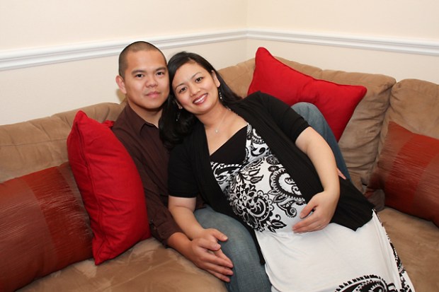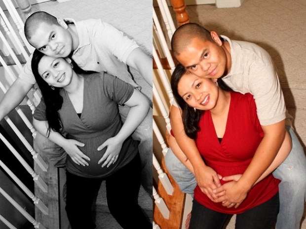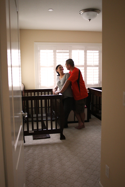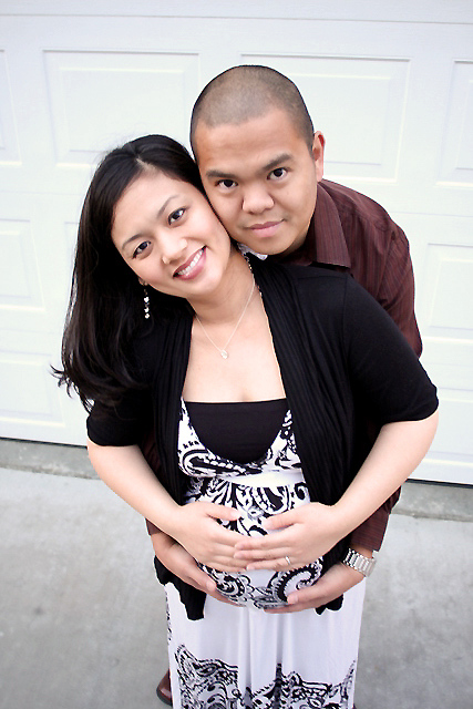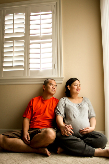 It was such a fun shoot! Even though it was pouring rain, we had such a great time shooting where we could. We stole a few moments of dryness outside, but shot mostly in the house. Iya and Chris were such great sports, especially Iya (who I seem to have forgotten momentarily was carrying two babies) who did everything I asked her to. “Please lie down…please sit on the floor…please sit on the staircase…” Thanks, girl. Sorry about that =)