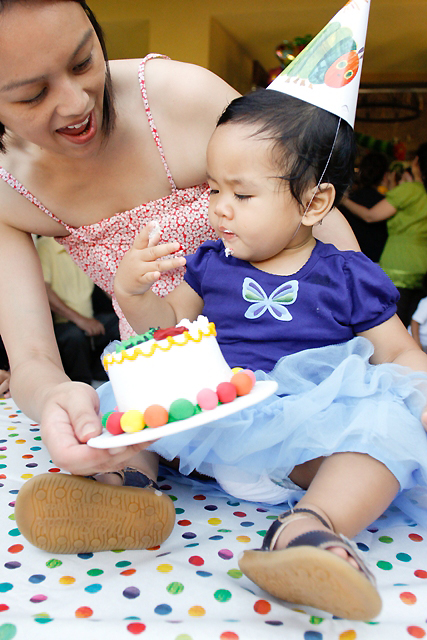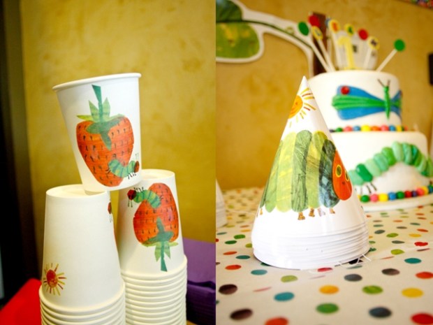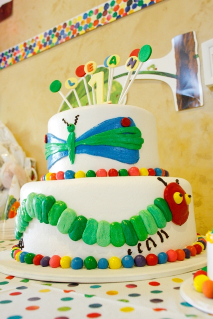 What a fun day this was! Leah’s theme was Eric Carle’s “The Hungry Caterpillar,” and Rowena, Leah’s mom, went through great lengths to keep the theme throughout. All the little details, from the caterpillar-shaped balloons, to the cups and party hats, to the incredible cake! They didn’t miss a beat.
