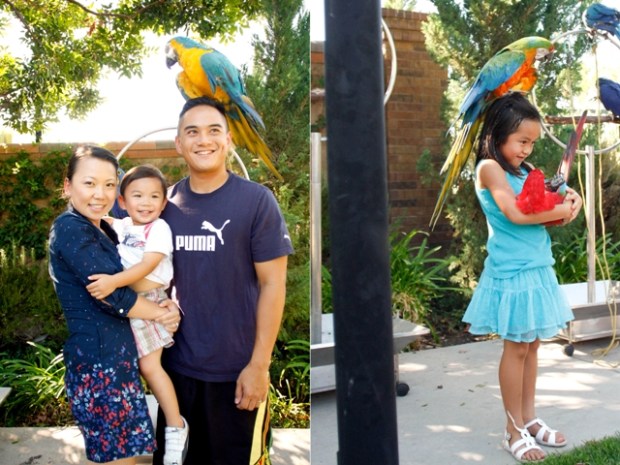 To entertain the guests, a bird-trainer came by with four of his parrots to do tricks and such. Super entertaining!