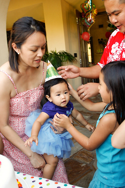 She was totally overwhelmed. After a long nap, walking into a backyard full of people will do that to you…especially if you’re only a year old. Seems like just a few months ago we were at the Cathedral for Leah’s Baptism, and suddenly, poof! 1st birthday!