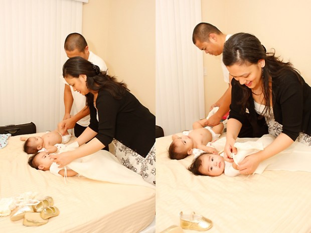I drove to Iya and Chris’ in the morning so I could take some shots of them getting ready for the big day. If there’s one thing I’ve learned from these awesome parent-friends of mine, it’s that teamwork is not just one thing, it’s EVERYTHING, especially when there are kids in multiples. I got to watch the girls while their parents got dressed, and they were both just so well-behaved, playing with their toys while I snapped away.