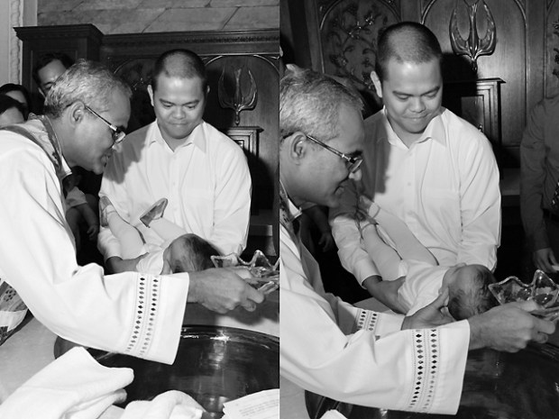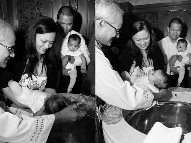 The girls were so good during the whole ceremony, mostly staring curiously at everything and everyone around them; from waiting in the pews to the moment of truth at the baptismal fount, Charlie and Alex were as well-behaved as Iya and Chris could hope for.
