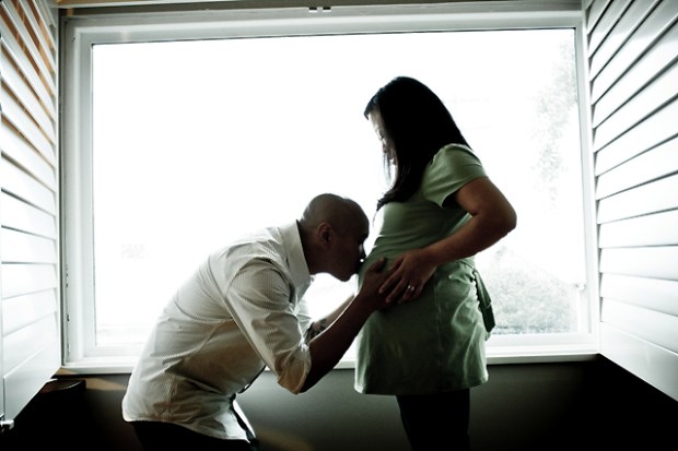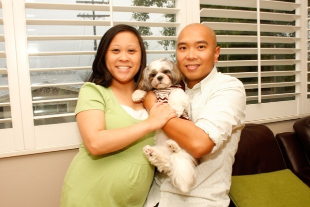As much as Rochelle and Matt hate taking pictures, they didn’t want to miss out on the chance to remember every part of their baby daughter’s life – from the very beginning. It was pouring rain that day, but they have this huge set of windows in their living room that provided just the right amount of light. And in moments I needed it, I cheated and used a flash – I know, drats! It didn’t matter, though. Flash or window light, the brightest things in that house were Rochelle, Matt and soon-to-be big sister pup, Chewie – glowing with anticipation.