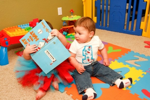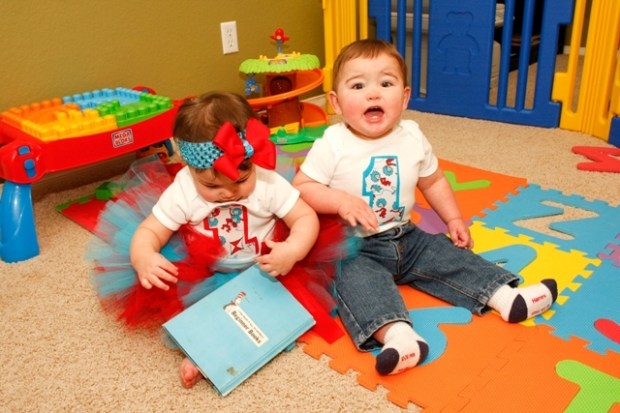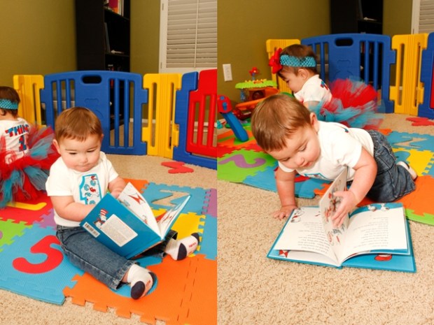 Dr. Seuss is all the craze! The day after Charles’ super Seussical 1st birthday, I drove through some crazy, torrential rain to Valencia to spend a couple of hours with three adorable kids. Charlotte and her baby siblings, Abbie and Ben. Leah, their mom, wanted to send out the twins’ 1st birthday invitations with some pictures of the celebrants. Thing 1 and Thing 2 – hahaha! I couldn’t believe what a cute idea their outfits were! I was beside myself, Abbie and Ben were so cute and funny! And big sis, Charlotte, took some time to warm up to me, but I we got to chatting just a bit about the Disney Princesses and then she started bouncing this beach ball around and all of a sudden, the shyness started to melt away. I’m so happy kids aren’t afraid of me. Maybe it’s my shortness that keeps them from being scared or intimidated…ya’ think? =)