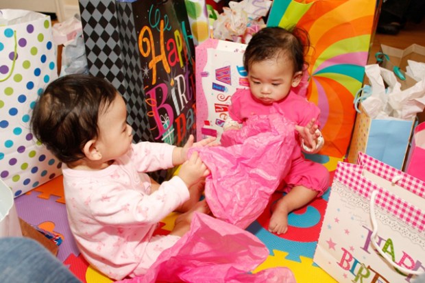Charlie and Alex ended their day with a mass opening of gifts (well, Iya opened and we watched, haha!), caring for the packaging more than anything, laughing at each other, clapping their hands and I couldn’t help but think, they’re one already?! Weren’t we all just taking turns holding them at the hospital?! But before I could get all mushy or senti about it, I was distracted by the two silly little girls sitting in the sea of giftbags, playing with a crumpled piece of tissue and looking as content as can be. 1 year old – now THAT was the life!
