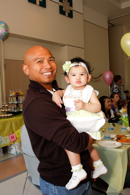 Charlie and Alex took a really short nap in the morning, and when they got to their party and saw all their guests, they looked like they were fighting sleep. Alas, they gave in for a little while but woke up in time for cake! Our friend from college, Belle, made this AMAZING two-tier cake, not to mention two personalized smash cakes for the girls to, well, smash. They didn’t exactly do any smashing though. They, in fact, looked kinda weirded out by their mom and dad sticking their fingers into the cake! I think Chris and Iya had more fun with that smash cake than the girls did. haha!
