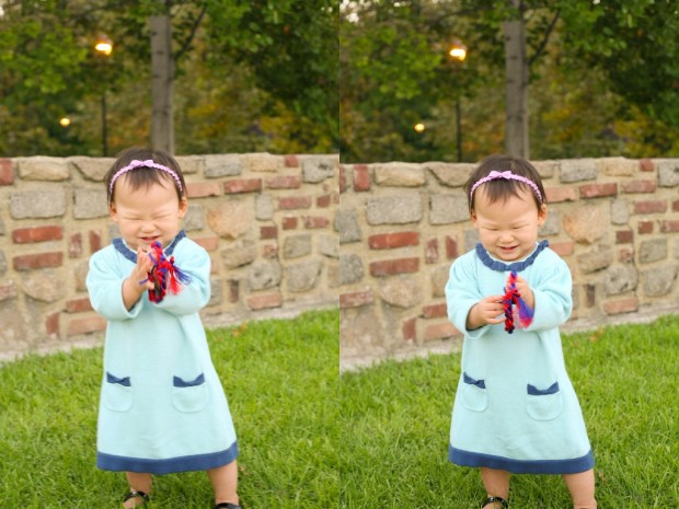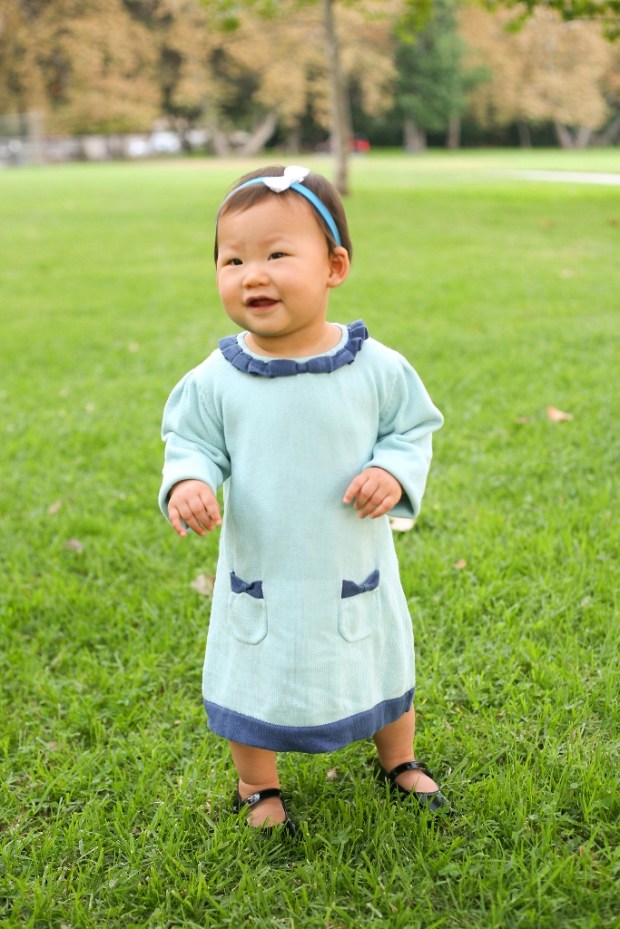 Whatever fussiness and clinginess she was feeling before that moment, it was gone and all we had left for this shoot was a very happy little girl in a baby sweater dress. Baby. Sweater. Dress. Cuteness to the nth degree.