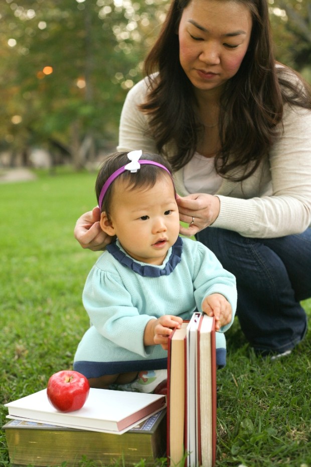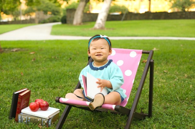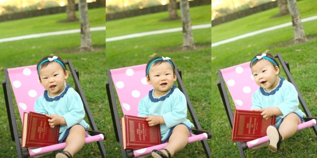 Elisabeth’s 1st birthday celebration was coming up that weekend and, in Korean tradition, she would be placed in front of a few items representing a number of potential career choices. We spent this session giving her a preview of her future career choices and she loved every bit of it; not just getting to play with all this different stuff, but getting to run around the park.