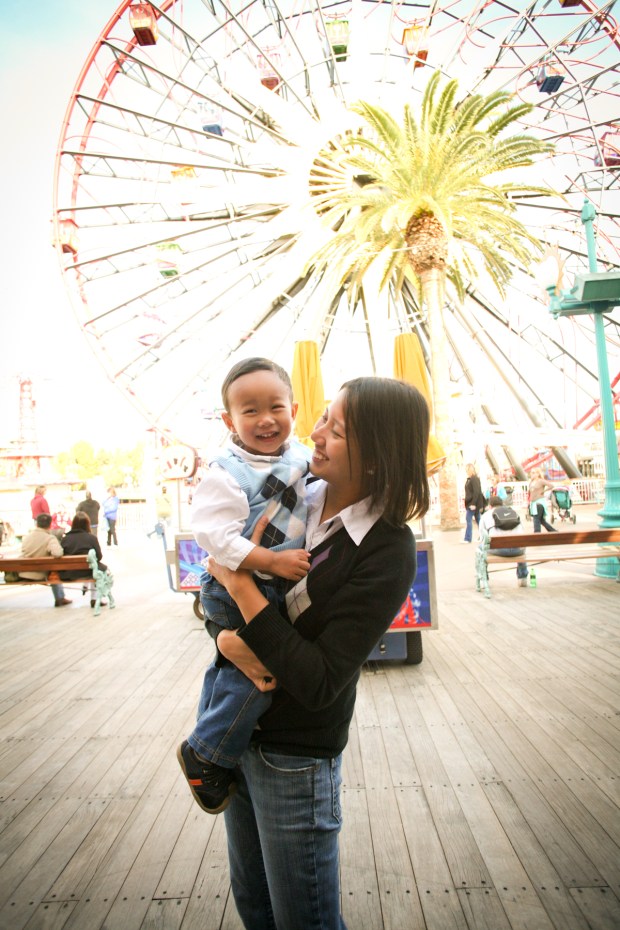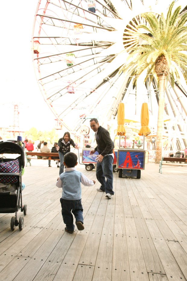 We walked around Paradise Pier, my favorite part of the park, and when he saw the open space, Gavin let loose and looked like the happiest kid there. He walked around the shops like he was searching for something to buy, tried on some mouse ears, grabbed some candy that he handed to his mom and that Rea put back on the shelf, haha!