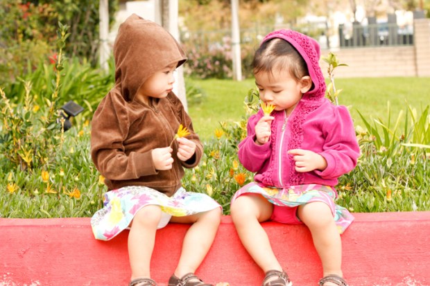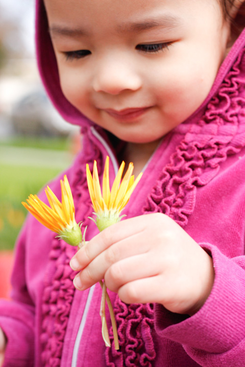 Iya finally got them to sit still on the curb. They spent the remainder of their time outside smelling the flowers. Alex was so into it. Charlie kept looking at her sister, wondering what the big deal was. haha! Oh gosh, I love these girls so much!