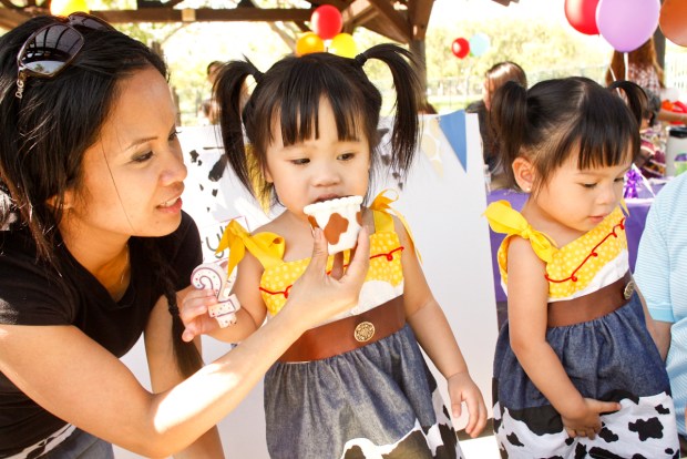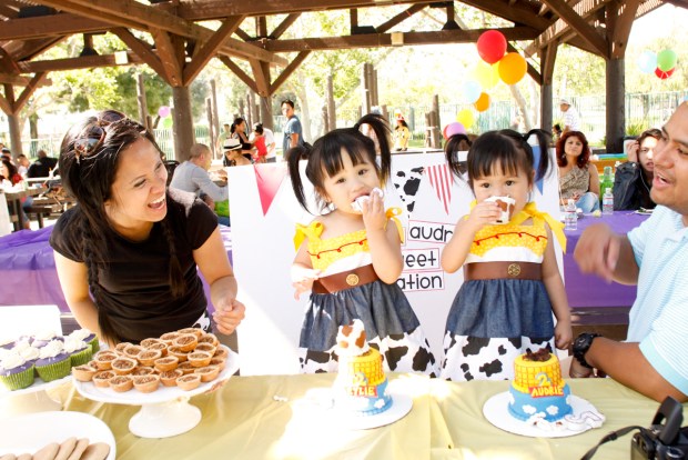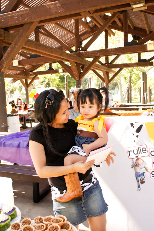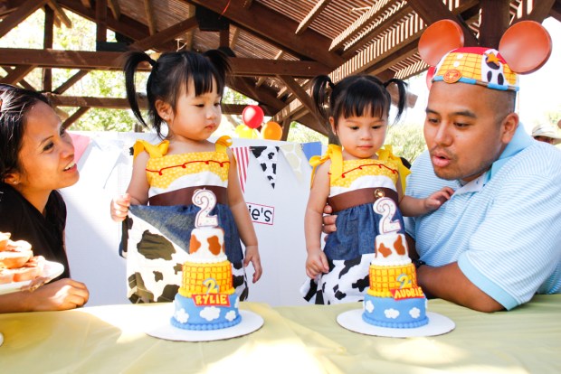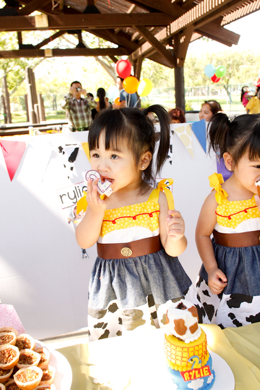 Last year, Rylie & Audrie celebrated with Strawberry Shortcake and her gang. This year, they had help from Woody, Buzz Lightyear and the rest of Andy’s toy chest. With custom-made dresses modeled after Jesse, the cutie patootie pair of sisters greeted their terrible twos (though I have to say, neither show much of anything “terrible”) with smiley faces and the energy to boot.