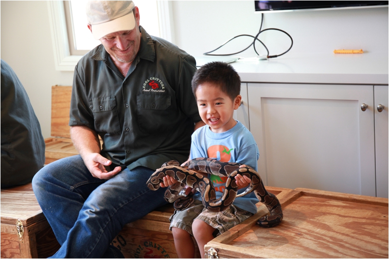 Jacob and his friends were never left twiddling their thumbs either. The Beat Buds came by to teach the kids about music and playing instruments, there were little tables and chairs in the patio with paper, color pencils, stickers, and stuff to bring out the tots’ creativity, and then there was a reptile show. A REPTILE SHOW, and all the kids, especially the celebrant, absolutely loved it! No huge snakes or creepy crawlies could scare Jacob and he just had a grand time celebrating the Big 3.